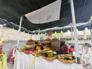 Suasana khidmat menyelimuti pelataran Parahyangan Kampus Sumber Daya dan Pembelajaran Universitas Pendidikan Ganesha (Undiksha) Kampus Denpasar saat digelar puncak perayaan Piodalan Purnama Kapat, Senin (6/10). Upacara keagamaan ini merupakan wujud bhakti dan rasa syukur civitas akademika Undiksha kepada Ida Sang Hyang Widhi Wasa atas limpahan rahmat dan tuntunan-Nya.